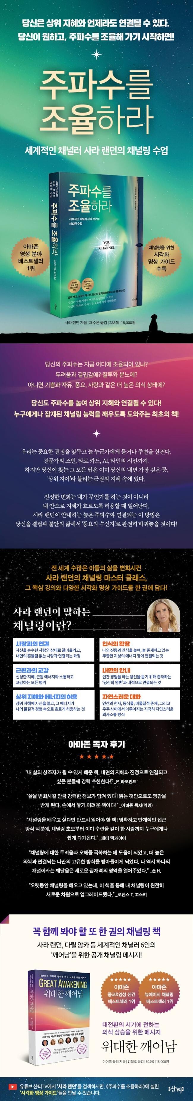 어떻게 우리의 주파수를 조율하고 진동수를 끌어올려 상위 자아나 상승한 마스터, 별 가족 등의 지혜를 수신할 수 있는지, 또 내 영혼의 목적을 어떻게 현실로 구현해 낼 수 있는지 단계별로 안내할 뿐 아니라, 독자들이 자신의 채널링 능력을 계발하고 신뢰할 수 있도록 수업에 참여했던 많은 학생들의 채널링 사례, 실제적인 시각화 명상 가이드들, 또 자신이 채널링하는 고차원 존재인 ‘위원회’의 지혜와 가르침도 사이사이에 담아내고 있다.