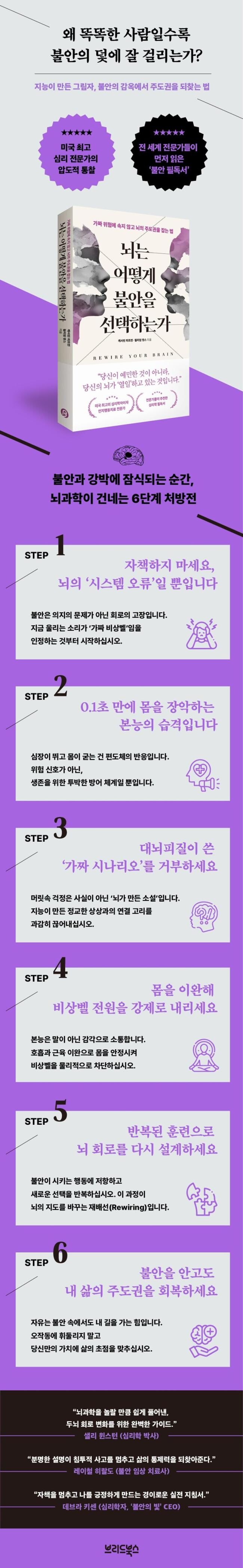 우리는 흔히 불안이나 강박을 예민한 성격이나 부족한 의지의 문제로 치부하곤 한다. 그러나 뇌과학의 관점에서 불안은 결코 개인의 결함이 아니다. 이 책 『뇌는 어떻게 불안을 선택하는가』는 인류의 생존을 책임져온 원시적인 구식 뇌 ‘편도체’와 고도의 지성을 담당하는 현대적인 신식 뇌 ‘대뇌피질’의 오작동과 충돌을 파헤치며, 불안의 진짜 정체를 알려준다.