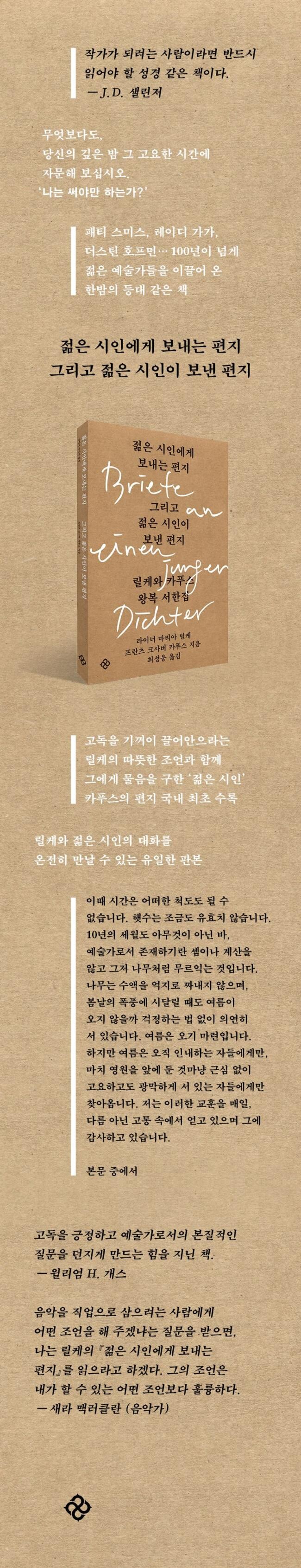 음악을 직업으로 삼으려는 사람에게 어떤 조언을 해 주겠냐는 질문을 받으면, 나는 릴케의 『젊은 시인에게 보내는 편지』를 읽으라고 하겠다. 그의 조언은 내가 할 수 있는 어떤 조언보다 훌륭하다.