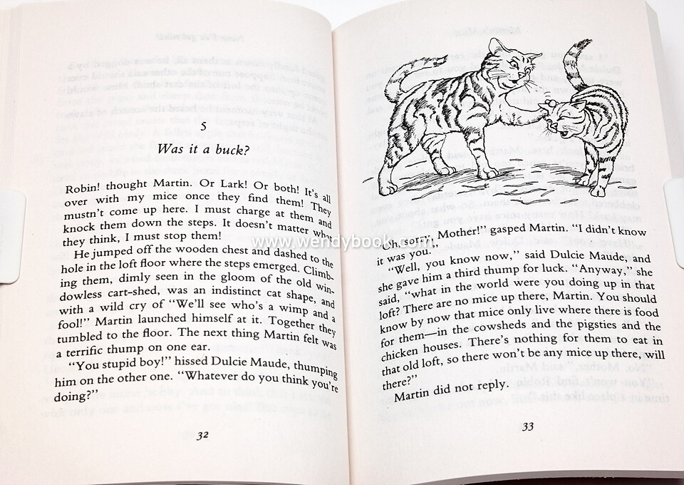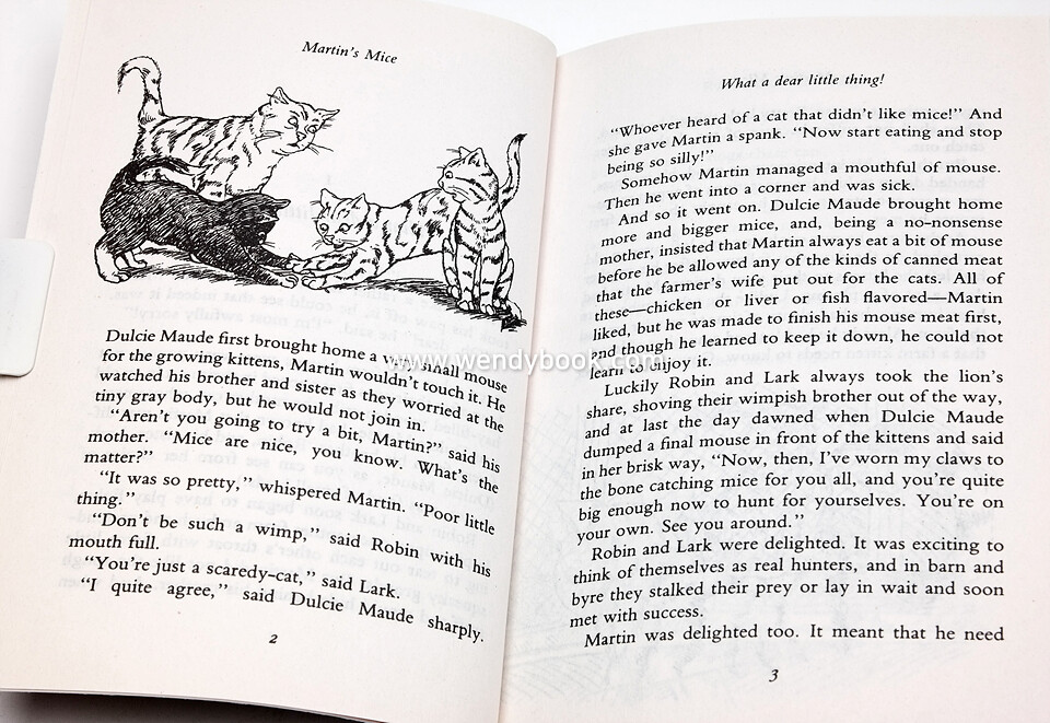 기발한 상상과 넘치는 위트로 많은 사랑을 받는 작가 Dick King-Smith가 또 한 번 뒤통수를 때리는 설정의 이야기를 가지고 왔네요. 《Martin's Mice》인데요, 고양이가 애완동물을 그것도 쥐를 키운다는 거죠. 그런데 생쥐가 고양이의 이런 의도를 눈치 챘으니 어쩌면 뻔한 전개가 될 수도 있습니다. 그러나 설정 자체가 재미있고 저자의 필력은 말할 것도 없으니 정말 기분 좋은 이야기가 펼쳐집니다. ^^