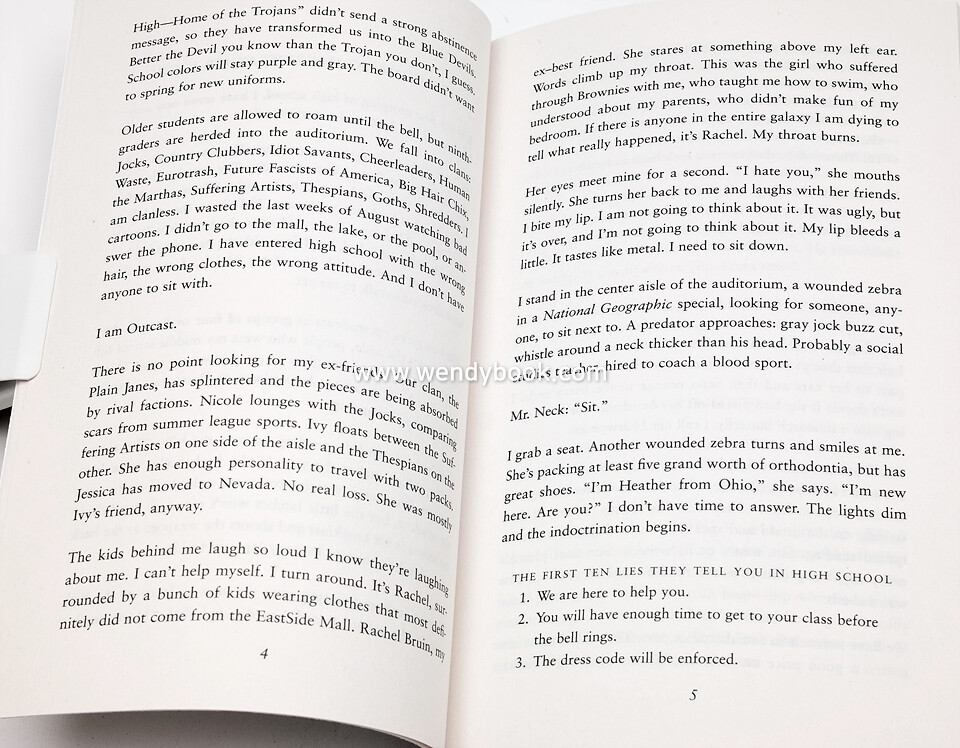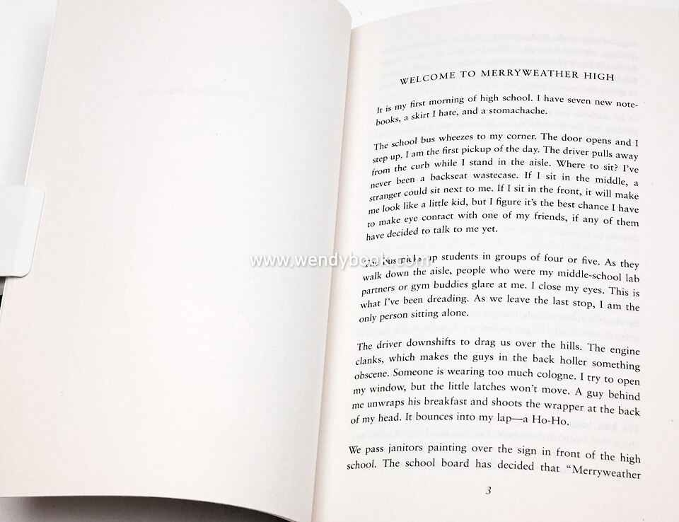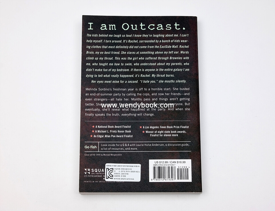 고등학교 입학 첫날의 풍경부터 담담한 내레이션으로 풀어가는 《Speak》는 성폭력과 왕따로 인해 실어증에 걸린 Melinda의 이야기이다. 예민한 소재를 다룬 수많은 작품들 중에 최고로 꼽히는 작품으로 美청소년들의 필독서라고 할 수 있다.